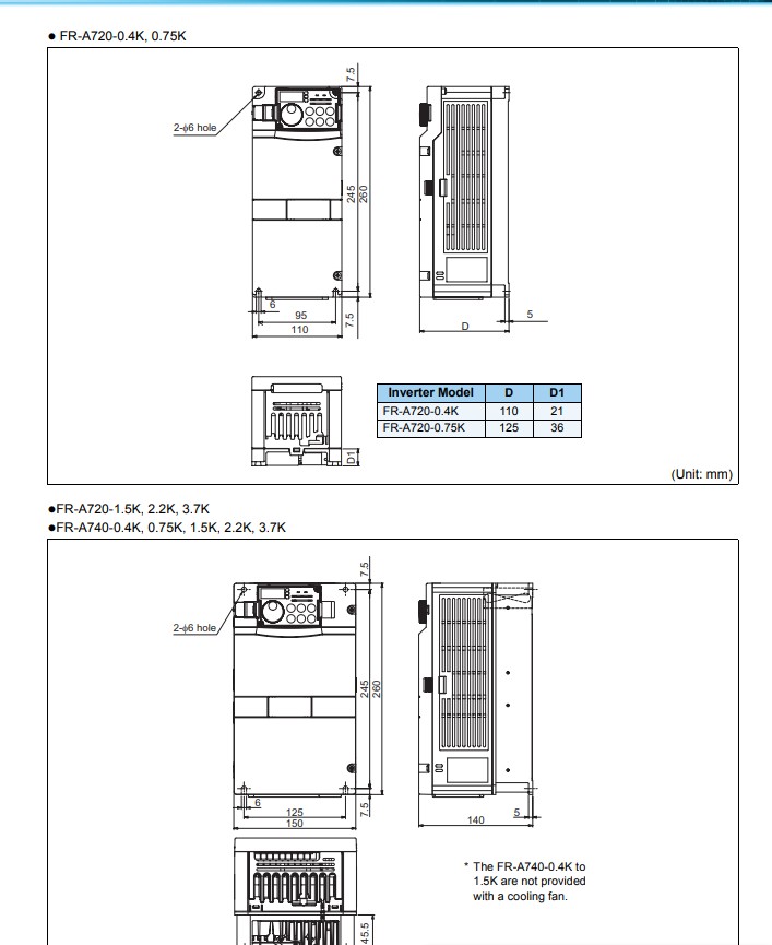 | Biến Tần Mitsubishi FR-A720-0.4K: 3 pha 200VAC 0.4KW, loại tiêu chuẩn |