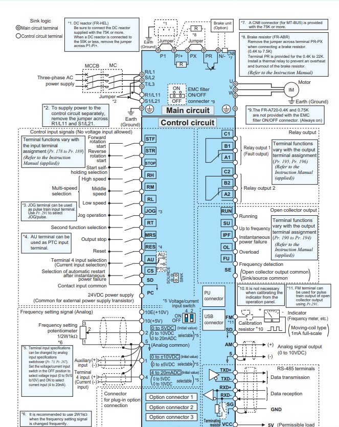Tương tự như những “anh em” cùng series FR-A720, Biến Tần Mitsubishi series FR-A720 3 pha 200VAC 15KW-90KW được sử dụng trong các hệ thống máy móc, thiết bị tự động nhằm điều khiển tốc độ và mô-men của động cơ.