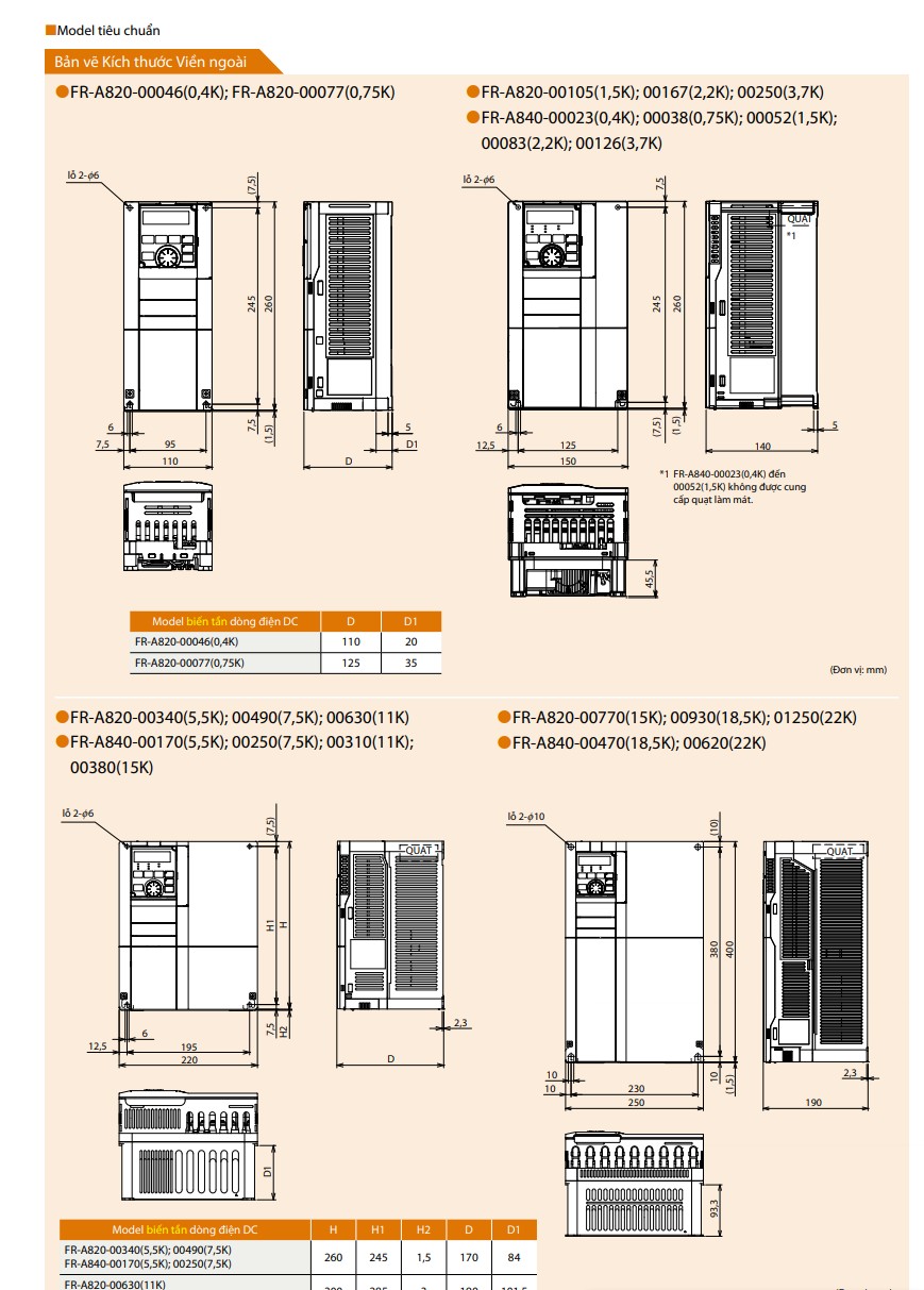 | Biến Tần Mitsubishi FR-A820-22K: 3 pha 200VAC 22KW, loại tiêu chuẩn |