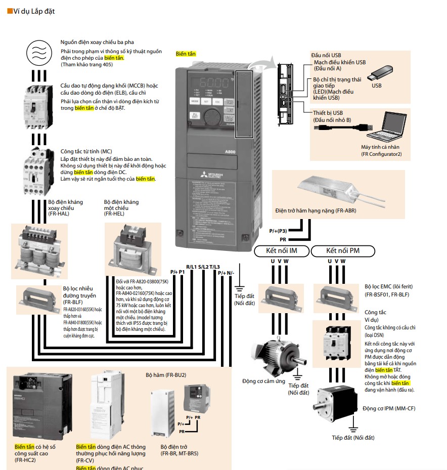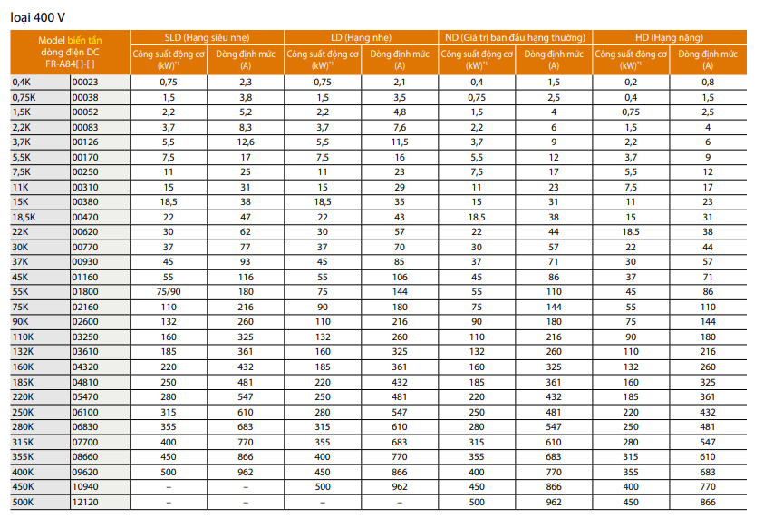 | Biến Tần Mitsubishi FR-A840-7.5K: 3 pha 400VAC 7.5KW, loại tiêu chuẩn |