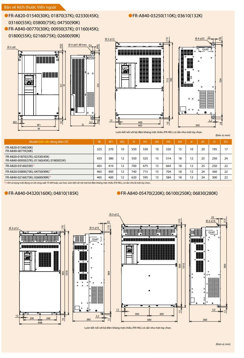 | Biến Tần Mitsubishi FR-A840-5.5K: 3 pha 400VAC 5.5KW, loại tiêu chuẩn |