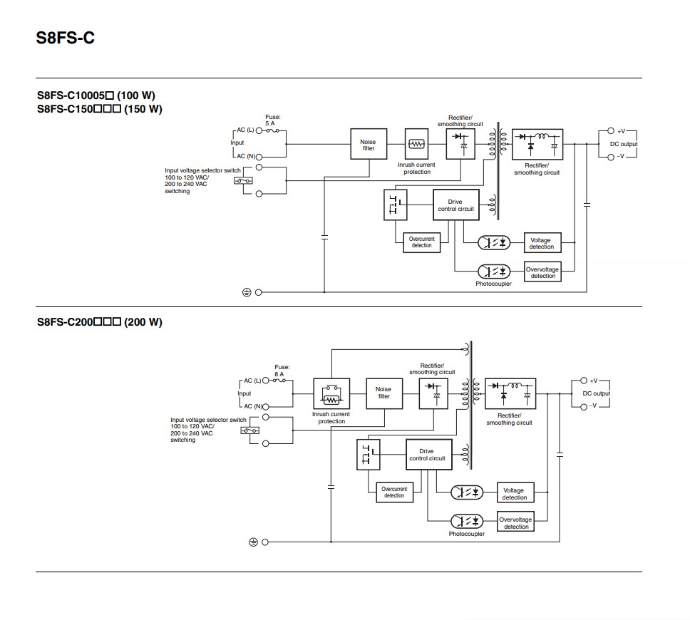 | S8FS-C15012: Điện áp nguồn cấp 100-240 VAC, Điện áp ngõ ra 12VDC, công suất 150W-12.5A |