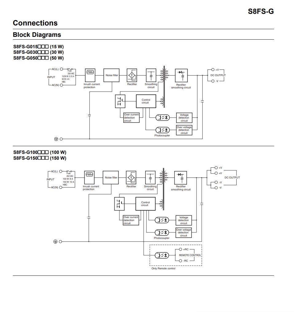 | S8FS-G01524CD: Điện áp nguồn cấp 100-240 VAC, Điện áp ngõ ra 24VDC, công suất 15W-0.65A |
