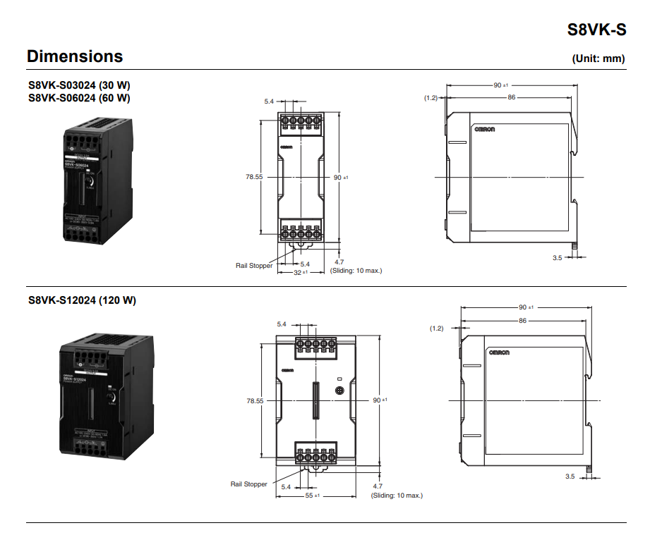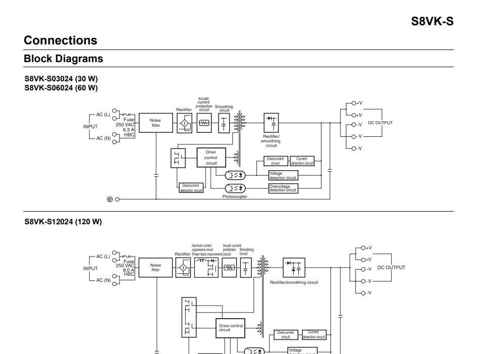 | S8VK-S12024: Điện áp nguồn cấp 100-240 VAC, Điện áp ngõ ra 24VDC, công suất 120W-5A |