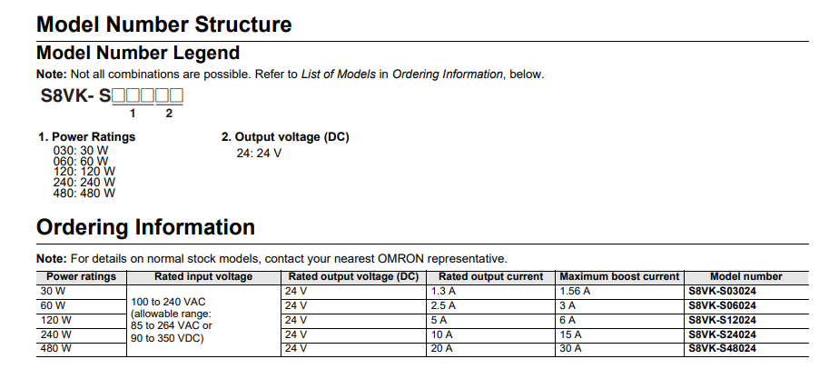 | S8VK-S48024: Điện áp nguồn cấp 100-240 VAC, Điện áp ngõ ra 24VDC, công suất 480W-20A |
