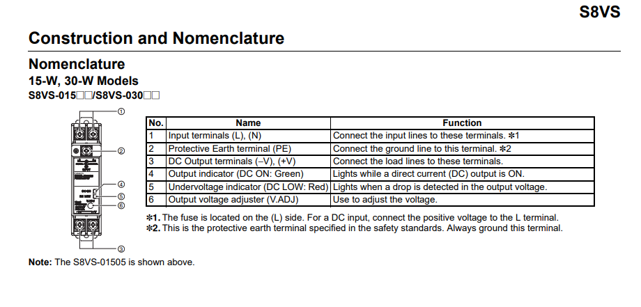 Series bộ nguồn S8VS Omron là thiết bị có chức năng bảo vệ các bộ điều khiển (PLC), máy móc khỏi việc bị quá tải, quá áp; đảm bảo điện áp ngõ ra; giúp đấu nối nguồn song song; cảnh báo điện áp thấp và hỗ trợ đấu nối nguồn nối tiếp. Bộ nguồn còn có chức năng dự báo/cảnh báo thời gian bảo trì của máy móc, hỗ trợ người dùng sắp xếp, xác định lịch bảo dưỡng máy móc phù hợp.
