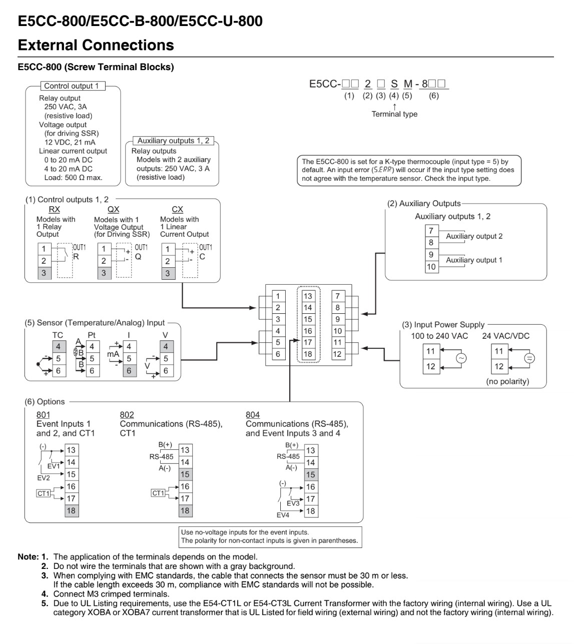 E5CC-RX2ASM-801: 1 Out Relay, 2 Alarm, 1 CT input, 2 Event Input, nguồn AC100-240 |