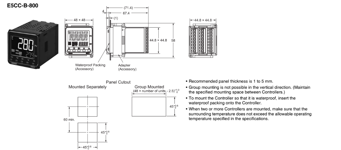 Tigatech tiếp tục giới thiệu bộ ổn nhiệt E5CC-B-800 kích thước 48×48 mm nguồn AC100-240 do Omron sản xuất, là thiết bị điều khiển nhiệt độ sử dụng cho các bộ điều khiển (PLC) với chất lượng chính hãng, đảm bảo vận hành lâu dài.