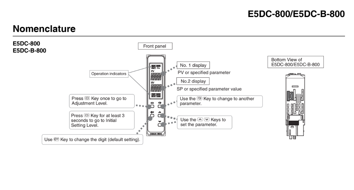 Bộ ổn nhiệt E5DC-800 kích thước 22.5 × 96 mm, nguồn AC100-240, CT input/Event input là thiết bị thuộc series E5DC-800 của Omron, với nhiều chức năng được cải tiến, phù hợp với đa dạng PLC trong công nghiệp.