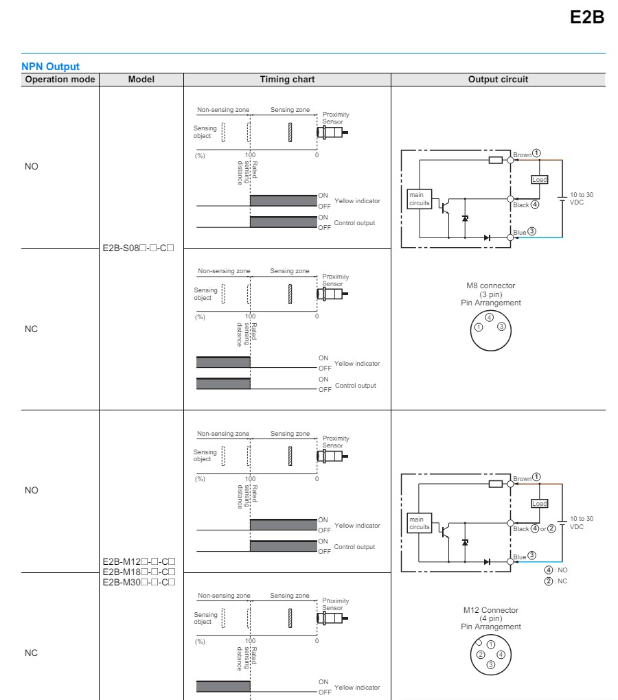 | E2B-S08KN04-MC-B1: Cảm biến tiệm cận, inductive, stainless steel, short body, M8, unshielded, 4 mm, DC, 3-wire, PNP NO, M8 connector 3 pin |