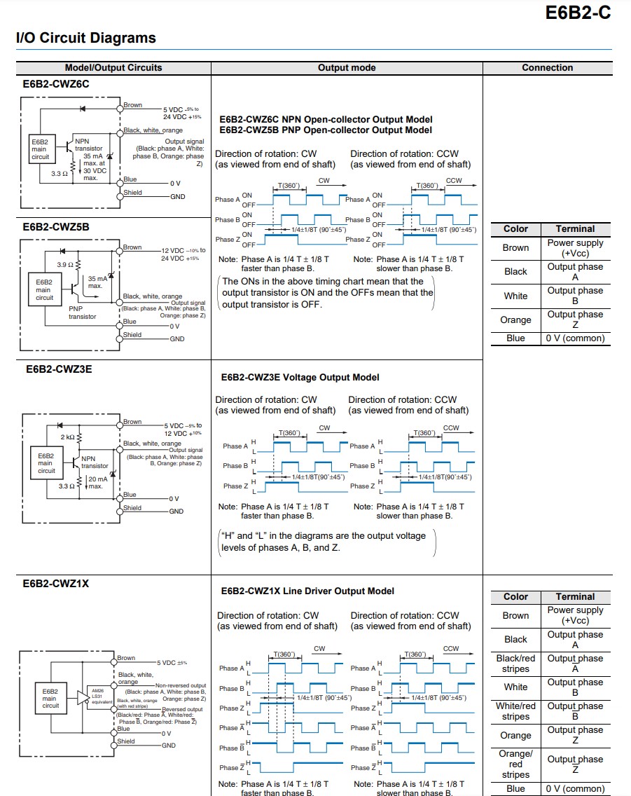 | E6B2-CWZ6C 1000P/R 0.5M: 5-24VDC, 1000 xung/vòng, NPN output, Cáp 0.5M |