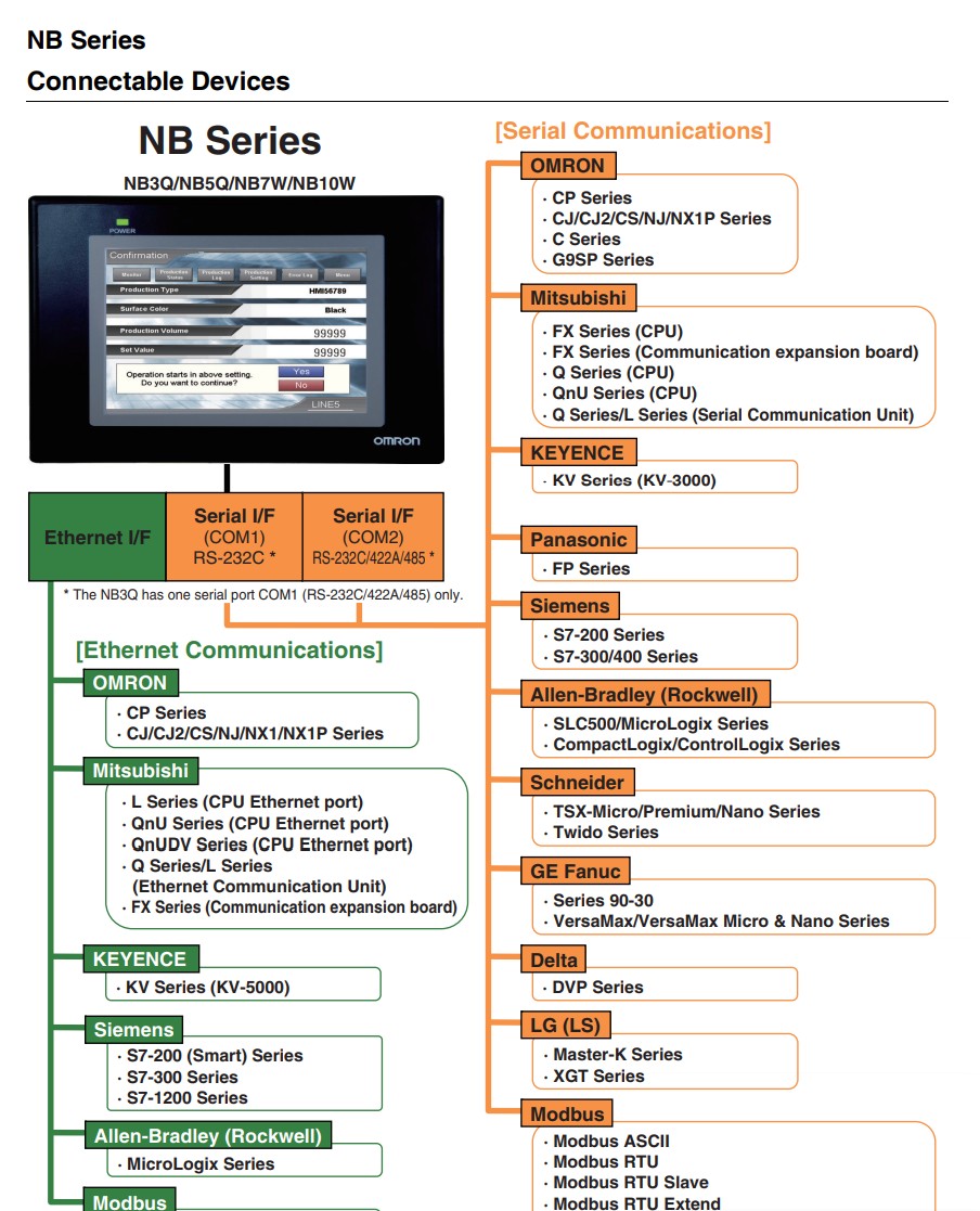 | NB3Q-TW01B: 3.5 inch, 1 Ethernet port, 1 RS-232 port |