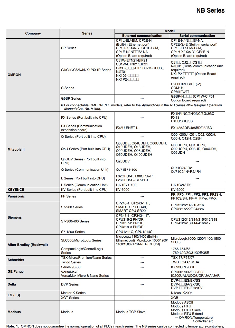 | Thiết bị tương thích | Allen-Bradley ( Rockwwell): CompactLogix series, Allen-Bradley ( Rockwwell): ControlLogix series, Allen-Bradley ( Rockwwell): SLC500 series, Allen-Bradley ( Rockwwell:) MicroLogix series, Delra: DVP series, GE Fanuc: 90-30 series, GE Fanuc: VersaMax Micro & Nano series, GE Fanuc: VersaMax series, Keyence KV series : KV-3000, Keyence KV series: KV-5000, LG (LS): Master-K series, LG (LS): XGT series, Mitsubishi: communication expansion board FX series, Mitsubishi: CPU ethernet port L series, Mitsubishi: CPU ethernet port QnU series, Mitsubishi: CPU ethernet port QnUDV series, Mitsubishi: FX series, Mitsubishi: QnU series, Mitsubishi: ethernet communication unit L series, Mitsubishi: ethernet communication unit Q series, Mitsubishi: serial sommunication unit L series, Mitsubishi: serial sommunication unit Q series, Omron: C series, Omron: CJ series, Omron: CJ2 series, Omron: CS series, Omron: G9SP series, Omron: NJ series, Omron: NX1 series, Omron: NX1P series, Panasonic: FP series, Schneider: Nano series, Schneider: Premium series, Schneider: TSX-Micro series, Schneider: Twido series, Siemens: S7-200 series, Siemens: S7-300 series, Siemens: S7-400 series, Siemens: S7-1200 series, Siemens: S7-200 ( smart) series, Omron: CP series |