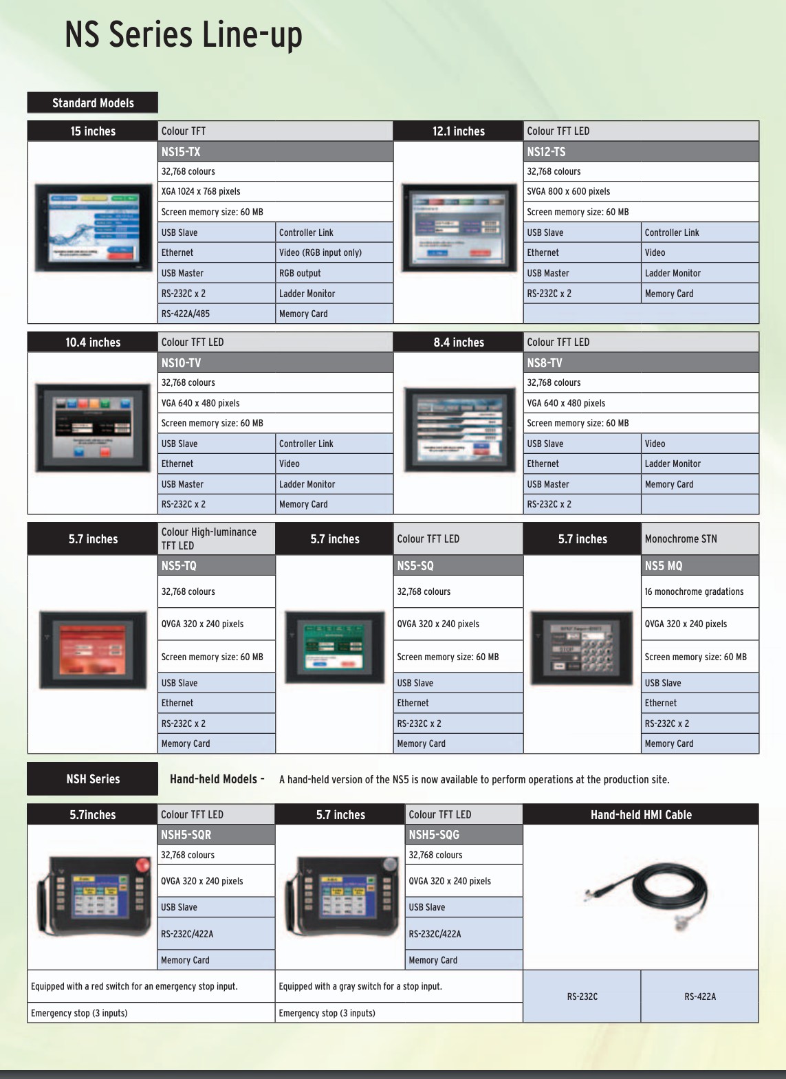 | NS5-SQ11B-V2: 5.7 inch, TFT Color, 320x240 resolution, Black, Ethernet port |
