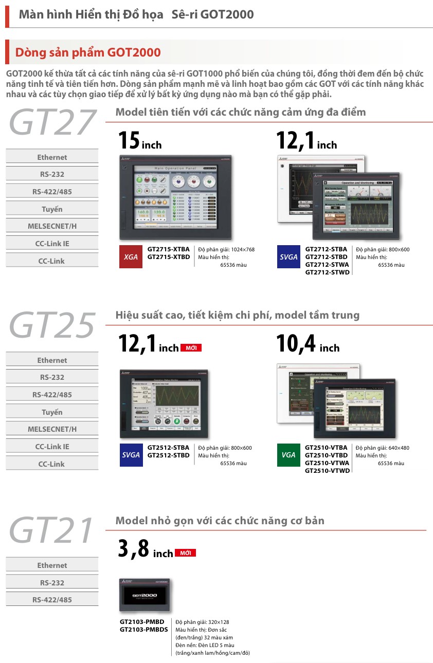 | Màn hình HMI Mitsubishi GT2712-STBA: 12.1 inch, nguồn cấp 100-240VAC, SVGA: 800x600, giao tiếp: USB, RS232, RS422/485, Ethernet |
