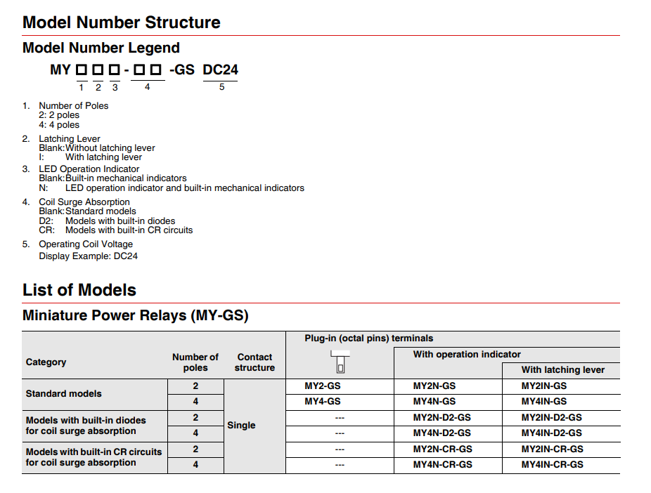 Rơ le MY Series Coil 110/120VDC: Sử dụng cuộn dây hoạt động với điện áp một chiều (DC).